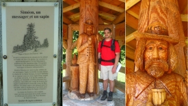 ”Avant la construction du chemin de fer reliant la Vallée de Joux à la plaine, les courriers à pied franchissant le Col du Marchairuz jouèrent un rôle important dans l’économie régionale. Ils acheminaient dans leur hotte messages et denrées indispensables. Lourdement chargé pour franchir le Col du Marchairuz, le messager Siméon Meylan s’arrêtait et se reposait sous un grand sapin blanc après la dure montée de la St-George. À la fin des années cinquante, ce vénérable conifère plusieurs fois foudroyé succomba au chantier de la nouvelle route. L’histoire devenue légende demeure, tout comme la statue de Siméon sculptée dans un tronc provenant de la forêt voisine et offerte par son auteur, M. Paul Monney de St-George. »