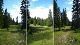 Et nous continuons par le chemin qui traverse une forêt, avant de bifurquer en direction du pâturage du Pré aux Veaux.
