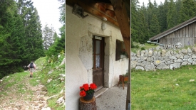 Montée vers La Neuve (1). Un pot de géraniums à l’entrée du chalet de La Neuve (2) et une annexe de La Neuve (3).
