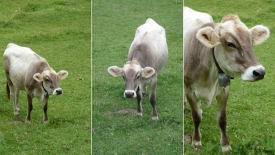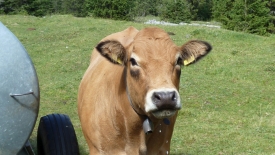 Deux événements marquent notre arrivée aux Frasses : nous rencontrons d’abord une génisse avec une jolie robe grise argentée, que nous élisons à l’unanimité, la Reine de Beauté du jour.