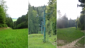 Cette tranchée dans la forêt, c’est un bout de la piste de ski (1). Et voici le tire-fesses (2) (3).