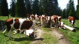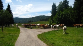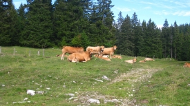 Mais avant de pouvoir monter, il faut montrer patte blanche au troupeau de vaches qui veille à la régulation de la circulation de ce carrefour stratégique, fort fréquenté par la race humaine.