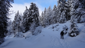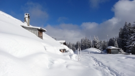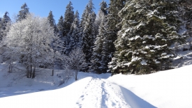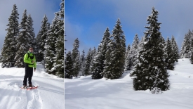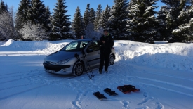 Nous arrivons à la voiture à 17h. Il fait -5°. Autant dire que nous ne traînons pas et que raquettes et chaussures sont encore pleines de neige lorsque nous les posons dans la voiture.
