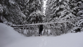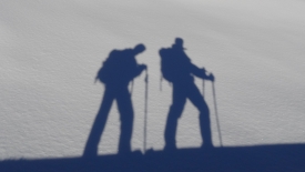 Je commence à sentir la fatigue. Les 15 cm de neige fraîche qu’il faut soulever à chaque pas ne pèsent que quelques dizaines de grammes, mais sur le nombre de pas, nous arrivons facilement à la tonne.