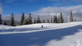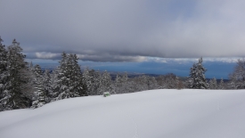 12 à 15 cm de neige fraîche et légère sont tombés hier. La nuit a été glaciale et la neige est intacte. C’est merveilleux.
