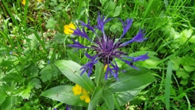 Devant la Maison de la Réserve, une jeune ranger salue les passants. Nous restons près de 30 minutes à discuter avec elle de son travail, de la faune et de la flore et de mille autres choses. Elle nous confirme que l’eau de la source Sainte Anne est bien potable (ouf) mais qu’il ne faut pas en abuser. Il fut question, au début du XXème siècle d’exploiter cette eau vertueuse, réputée pour soigner les maladies de l’estomac, sans parler de guérir de l’emprise de certains maléfices (!). La construction de bâtiments – hôtels, villas, pont – commença mais fut interrompue en 1914 pour ne jamais se terminer. Ce n’est que dans les années 1980 que toutes traces des bâtiments furent effacées. La Maison de la Réserve fut au préalable la Maison du ski de fond, à l’époque ou l’enneigement était encore abondant. Nous abordons également la présence invasive des genêts à balais. Elle confirme qu’ils participent à la lutte contre l’érosion et explique qu’il y a deux ou trois ans, suite à un été très sec, alors que toute la végétation avait été brûlée par la sécheresse, ils se dressaient encore, vert, seule source de nourriture obligée pour les ovins.