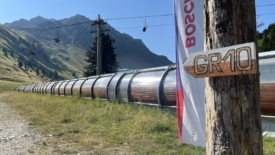 Nous passons entre les bâtiments de la station de ski et les remontées mécaniques, puis empruntons le sentier balisé GR10, aussi appelé « La grande traversée des Pyrénées ».