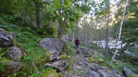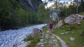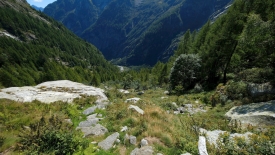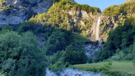Notre objectif du jour est justement de monter le long de la cascade, de suivre sur toute sa longueur le val Calnègia où coule la rivière du même nom avant de passer de 1’200 mètres à 2’200 mètres, altitude à laquelle se situent deux lacs, les Laghi della Crosa.