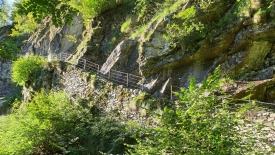 Nous gardons le torrent sur notre droite. Environ une heure après avoir quitté Puntid, nous arrivons à la hauteur de Gerra. Gerra est un hameau composé de 4 ou 5 bâtiments, mais est principalement connu pour sa Splüia Bela, une construction sous roche. Nous l’apercevons, de l’autre côté d’un pont métallique, moitié à l’ombre, moitié au soleil. « Ce soir, au retour », me dit Stefano, confiant.