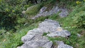 Et là, une belle illustration de la montée au sortir de Calnègia : des marches étroites, mais surtout très hautes. Pas facile à la montée, mais si vous voulez mon avis, nous allons également déguster à la descente.