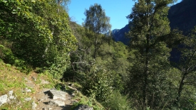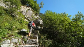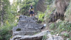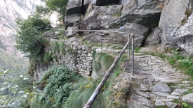 En haut de la cascade, il y a un autre village : Puntid. Le sentier qui y monte est un des must-do de la région et est donc fort bien entretenu et accessible à tous. A peine après avoir laissé les dernières maisons de Foroglio derrière nous, nous retrouvons nos premières marches. Tiens, ça faisait longtemps !