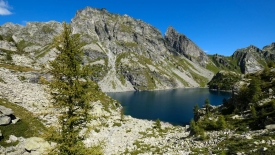 C’en est fini de la montée ! Le premier lac, le plus petit, est visible