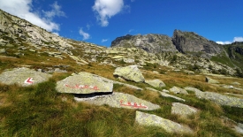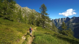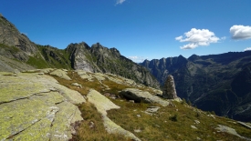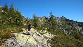 Le val Calnègia est une vallée suspendue, inaccessible en voiture. Le sentier qui la parcourt nous offre un répit bienvenu : il est presque plat. Et surtout il n’y a pas de marches. Ça fait tout bizarre. Un peu comme un marin lorsqu’il rentre à terre.