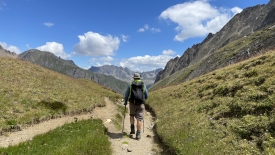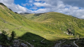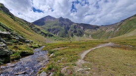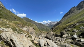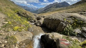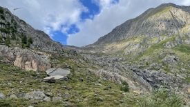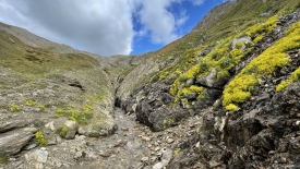 Le sentier descend parallèlement au rio del Gries. Lorsque les deux se rejoignent, le torrent sort à peine d’une gorge étroite.