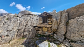 A l’arrivée au refuge, un petit autel dressé au bord du chemin est consacré à La Madonna dell’Aiuto. Il suffirait d’ajouter une pierre devant sa représentation en formulant un voeu pour qu’il s’accomplisse. Nous laissons ça à ceux qui ont réellement besoin d’aide.