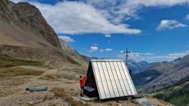 Arrivés au col, nous remarquons un minuscule refuge surmonté d’une croix. Nous nous approchons. Un drame s’est joué ici, il y a plus de 60 ans, le 29 décembre 1953. Un groupe de jeunes scouts, partis de Riale par une belle journée, se sont retrouvés coincés ici. Trois d’entre eux périrent.