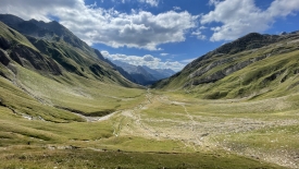 Devant nous, une vaste plaine alluviale, la valle del Gries.