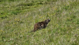 Une marmotte pas farouche qui se prélasse.