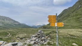 Du lac, il est possible de rejoindre le Val Cadlimo. Par le sentier bleu et blanc où nous n’avions pas osé nous lancer, faute au temps maussade et menaçant mais également à notre crainte de faire face à des difficultés insurmontables.