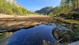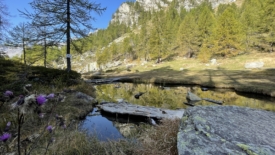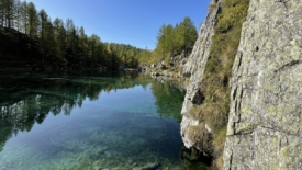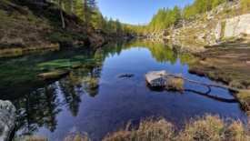 Les jeux d’ombres et de lumières font miroiter les eaux. De belles truites arc-en-ciel flottent sans effort entre deux eaux. Ici elles ne craignent rien. L’Alpe Devero et ses environs constituent un parc naturel. Avec toute la protection de la faune et de la flore nécessaire.