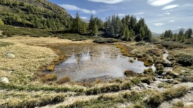 Le Lago delle Streghe est un petit lac aux eaux cristallines. Peu profond, nous pouvons distinguer toutes les pierres et autres troncs d’arbres qui y reposent.