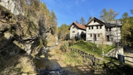 Nous traversons le pont qui enjambe le Rio Buscagna pour aller consulter les panneaux de départ de sentier. Notre sentier part sur la droite et nous franchissons à nouveau le pont. Nous laissons sur notre gauche une partie du village inexplorée. Nous reviendrons ici, m’assure Stefano.