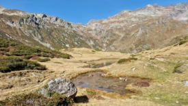 Nous ne sommes pas loin du sentier qui part vers la Bochetta d’Arbola, qui marque la frontière franco-suisse. Repus, nous nous décidons à entamer le retour. Stefano a prévu de rentrer par un sentier qui chemine de l’autre côté du Lago di Devero. Nous partons donc vers l’est, à la recherche de ce sentier, non sans, au passage, déguster quelques myrtilles mûres à point.