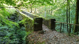 A côté, un petit oratoire et deux croix de fer rouillées. Dessus, des inscriptions, illisibles. Peut-être des noms, des dates, ou des circonstances de décès. La construction du pont n’a pas dû être de tout repos et a peut-être coûté quelques vies.