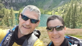 Un désagréable bourdonnement vient troubler notre repas. Un couple s’amuse à piloter un drone au-dessus du lac. Je reste stoïque un long moment. Le drone atterrit et avant qu’il ne reparte, je crie grazie! en espérant que le message soit compris. C’est le cas. Ils ramènent l’engin qui venait de décoller au sol et commencent à plier bagage.
