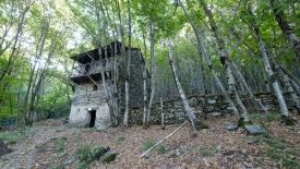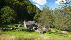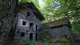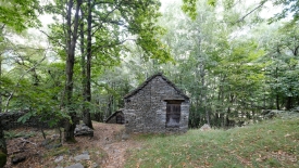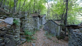 Nous venons de traverser un village dont même l’orthographe du nom est incertaine : Faïd, Fait, Faedo, ou bien encore Faido… L’origine, par contre, est connue : il vient de faggeto, ou hêtre en français. Et ce malgré les châtaigniers qui règnent en maître ici. Un village autonome, protégé des avalanches et des glissements de terrain. Des bâtiments utilitaires mêlés à des habitations, dont quelques unes sur 3 étages. Une théorie explique que ce serait l’ancêtre du village de Linescio, en contrebas. Mais en réalité, personne ne sait. Aucun écrit ne subsiste. La mémoire collective a même oublié ce village fantôme.