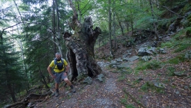 Stefano me montre la montagne et me dit : nous allons monter ici. Wow. La forêt paraît impénétrable et aucun signe ou trace ne laisse imaginer qu’un sentier y passe.