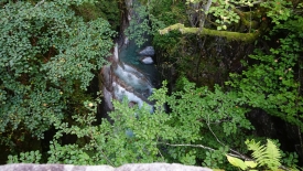 Nous ouvrons le portail et allons contempler la rivière et ses eaux tumultueuses qui coulent au fond d’une gorge.