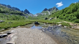 Nous partons ensuite en direction de la capanna Leìt, par un sentier alpin, très varié, un peu technique, qui nous fait gagner encore 120 mètres d’altitude.