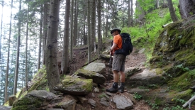 Plutôt que de monter face à la montagne, le sentier va et vient, par zigzag. La pente est donc douce et le plaisir maximal.