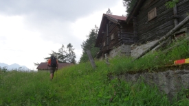 Nous pénétrons dans la salle commune, jouxtant la cuisine. Deux femmes sont affairées aux fourneaux. Nous les entendons discuter avec bonne humeur et complicité. Nous commandons deux chocolats chauds et observons, par les fenêtres, les nuages s’effilocher et s’accrocher aux cimes, puis les passer pour descendre vers nous. L’averse ne vient pas. Nos tasses sont fumantes et nous obligent à les déguster à petites lampées. Puis vient le moment de prendre une décision : attendre encore ou sortir.