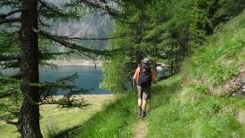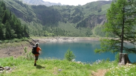 Nous poursuivons en direction de l’alpe Campolungo. Pour y parvenir, un sentier s’élève le long du bord est du lac.