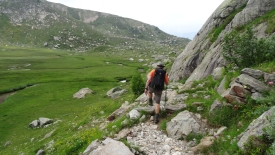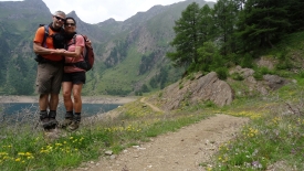 La descente jusqu’à la voiture est marquée par la rencontre de deux jeunes, assis sur des pierres, en plein milieu du sentier. Autour d’eux, du matériel de camping, des provisions et un sac à dos. Ils ont eu la mauvaise surprise de trouver le téléphérique fermé et donc de devoir soit abandonner leur projet de nuit au bord du lac soit monter leur matos à pied. Ils ont donc choisi la seconde option mais leur équipement est loin d’être adapté au trekking. Leur tente parapluie pèse 4 kg, autant que chacune des deux chaises de camping, trop longues pour être fixées sur un sac à dos. Une glacière remplie de bières est posée sur une rocher. Ils sont un peu déconfits mais déterminés. Nous leur souhaitons beaucoup de courage et continuons notre chemin, certains qu’ils garderont un souvenir inoubliable de leur nuit de camping.