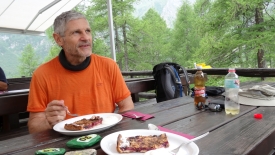 Nous trouvons un rocher plat, entre le lac et la cabane et nous nous y installons pour le pique-nique du jour. Même si nos estomacs ne sont encore pas tout à fait remis de notre gourmandise, il est 14h passées.