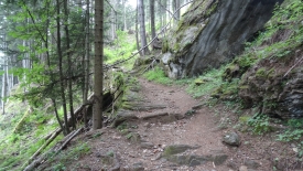Passée le restaurant, nous accélérons encore l’allure et c’est au pas de course que nous dévalons le sentier. Il a séché depuis l’averse de tout à l’heure et nos chaussures s’agrippent sur les aspérités des rochers ou les racines qui affleurent.