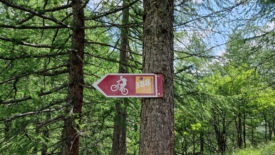 Je doute qu’il soit fréquemment utilisé dans le sens de la montée. Mes doutes sont confirmés par la description de l’itinéraire n° 388 : Bovarina Bike. Nous profitons d’un passage ombragé pour déguster notre première barre de la journée.