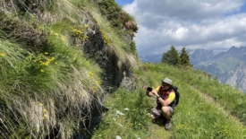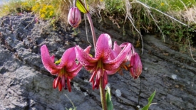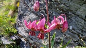 Stefano, en train de photographier un des nombreux pieds de lis Martagon qui borde la piste.