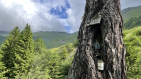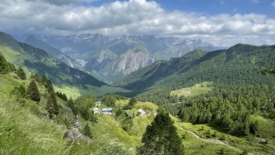 Le contraste de l’ombre et du soleil d’été sublime le vert des mélèzes et des prés. Déjà, à quelques centaines de mètres de la voiture, le paysage est magnifique.