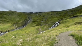 Nous commençons par suivre le Fiume d’Orsàira. Le sommet des montagnes est étouffé par les nuages.