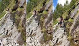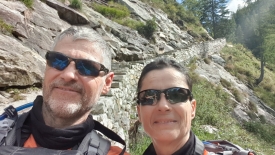 Voici un petit passage que Stefano n’a pas trop apprécié à la montée mais qu’il franchit sans même y penser dans le sens de la descente. Néanmoins, avant de s’y lancer, il me fait promettre de tenir la chaîne. Je promets. Croix de bois, croix de fer, si je mens je vais en enfer.