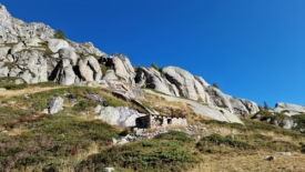 Une construction en ruine marque l’emplacement de l’Alpe della Balma où quelques bouses de vaches encore fraîches témoignent de la présence récente de bétail.