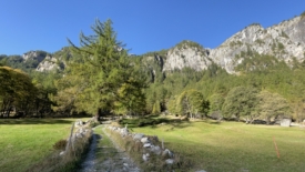 La route débouche sur une vaste prairie, plane. Deux cabanons en bois complètent l’installation. De là, les itinéraires de randonnée pédestre sont nombreux. Il est même possible de rejoindre l’Alpe Devero, via le sentier Via Alpina, au terme d’un peu plus de six heures de marche.