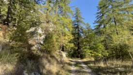 Nous réservons la belle piste pour la descente – car aujourd’hui point de boucle – et nous engageons sur le sentier, connu sous le nom chemin des Walser.