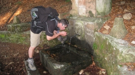 Stefano, en train de travailler la résistance de son estomac à une fontaine locale.