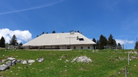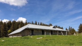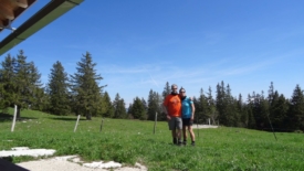 Et de trois. Un sans faute. Et comme demain Stefano part en voyage et que sa valise n’est pas tout à fait prête, je propose une montée à La Dôle afin que la balade soit raisonnable en terme de durée. La proposition acceptée et nous voici en route vers La Florettaz pour nous arrêter sur la route de la Dôle, près du fameux stock de bois piégé : il est 11h.