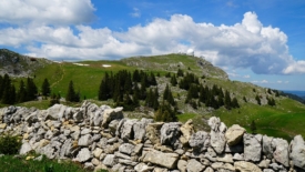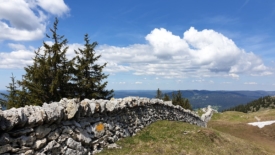 Vue sur La Dôle depuis le mur qui sépare deux pâturages : Les Paules et Les Creux.